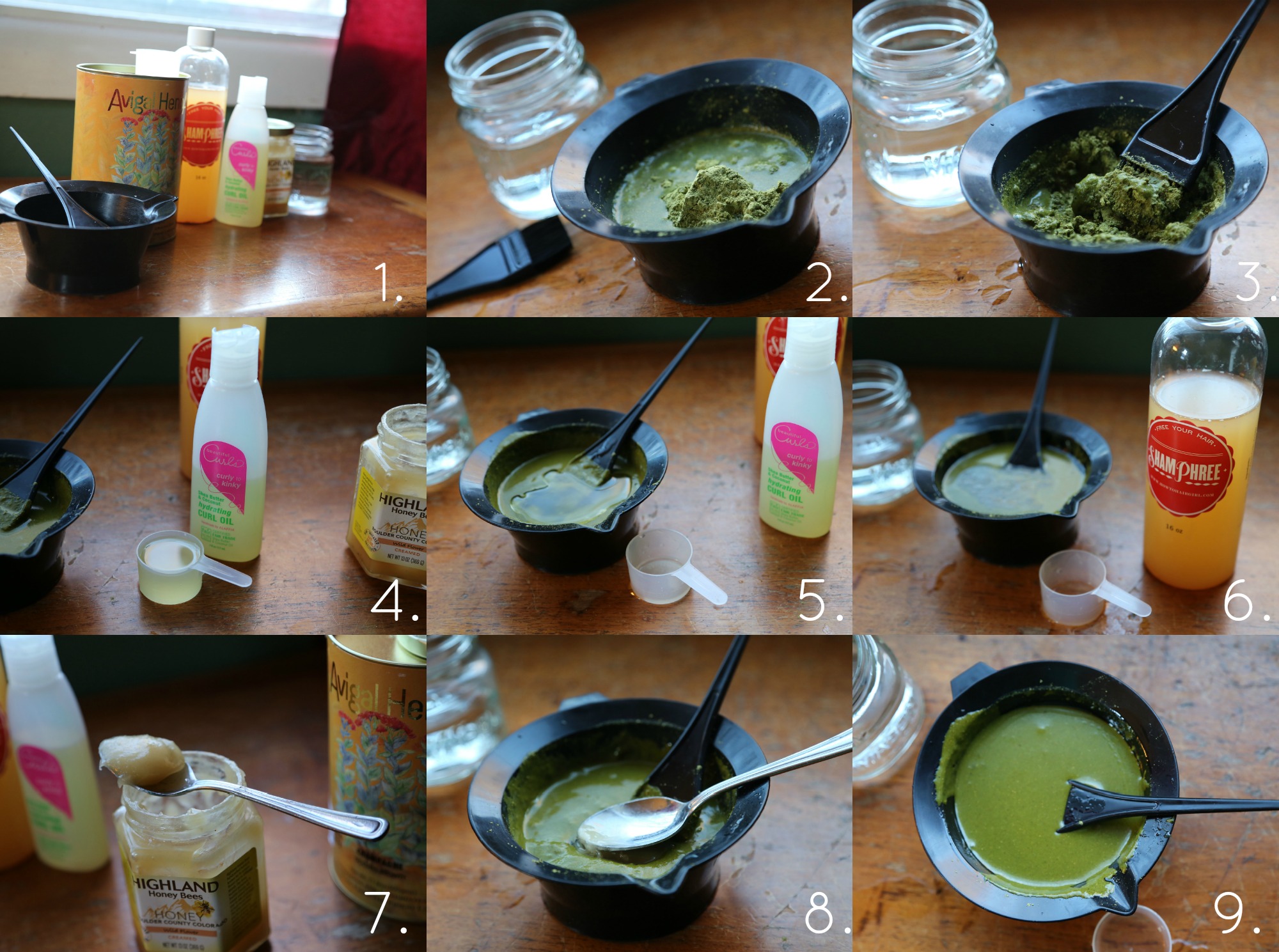 Henna ( I used Avigal, which is a great quality henna that comes in many shades and is easy to mix. I ordered it from Amazon, and it came 2 days later in a 17 oz can that was lovely to behold. )